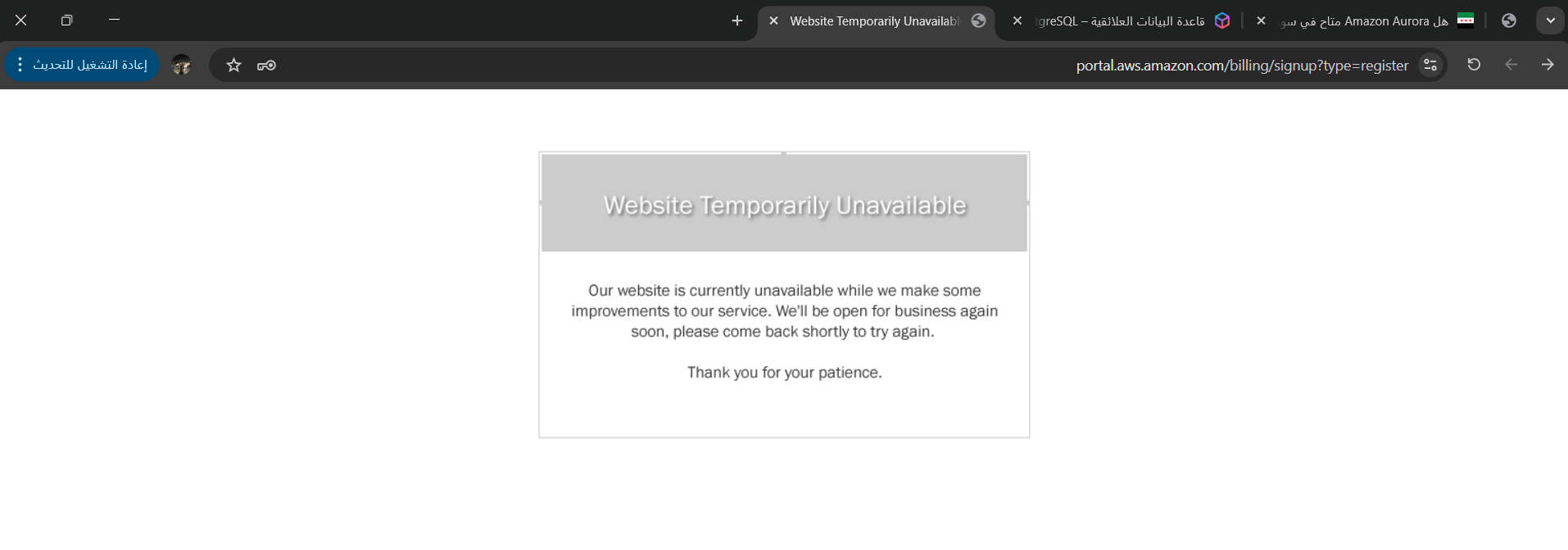 أكّد اختبار مجتمعي من سوريا عبر شبكة DSL أن صفحات منتج Amazon Aurora على aws.amazon.com تُفتح دون مشاكل، لكن وحدة تحكم AWS وخدمات الحساب محظورة. عند محاولة تسجيل الدخول إلى console.aws.amazon.com تظهر صفحة خطأ 400 مع رسالة «الدخول مقيّد» تُشير إلى أن الخدمة غير متوفرة في المنطقة. عند محاولة إنشاء حس...