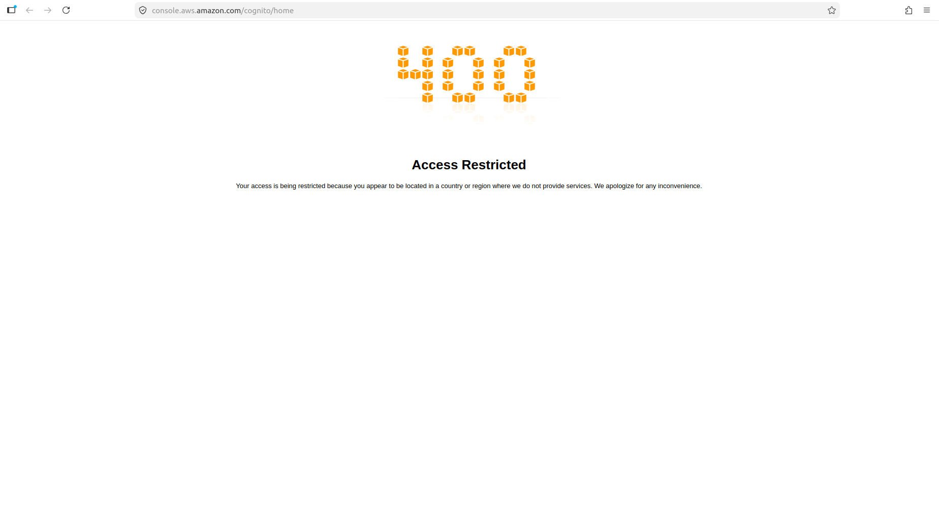 أكّد اختبار مجتمعي أن Amazon Cognito لا يزال محظورًا في سوريا. تُحمَّل صفحة المنتج التجارية على aws.amazon.com/cognito بنجاح، لكن عند الضغط على «البدء مع Amazon Cognito» يتم التحويل إلى console.aws.amazon.com/cognito/home حيث تُرجع AWS رمز حالة 400 مع رسالة «تم تقييد الوصول — يتم تقييد وصولك لأنك تب...