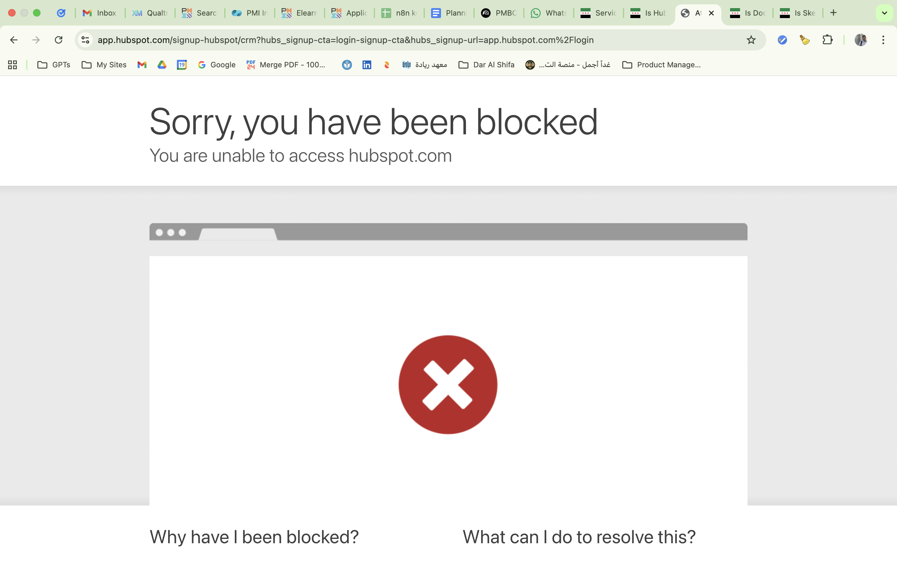 أكّد اختبار مجتمعي أن HubSpot متاح جزئيًا من سوريا. يُحمَّل موقع التسويق الرئيسي hubspot.com بشكل طبيعي، لكن محاولة الوصول إلى تطبيق CRM على app.hubspot.com/signup-hubspot/crm تُظهر صفحة حظر من Cloudflare: «عذرًا، تم حظرك. لا يمكنك الوصول إلى hubspot.com». إنشاء الحسابات وتطبيق CRM محظوران بينما يظل...