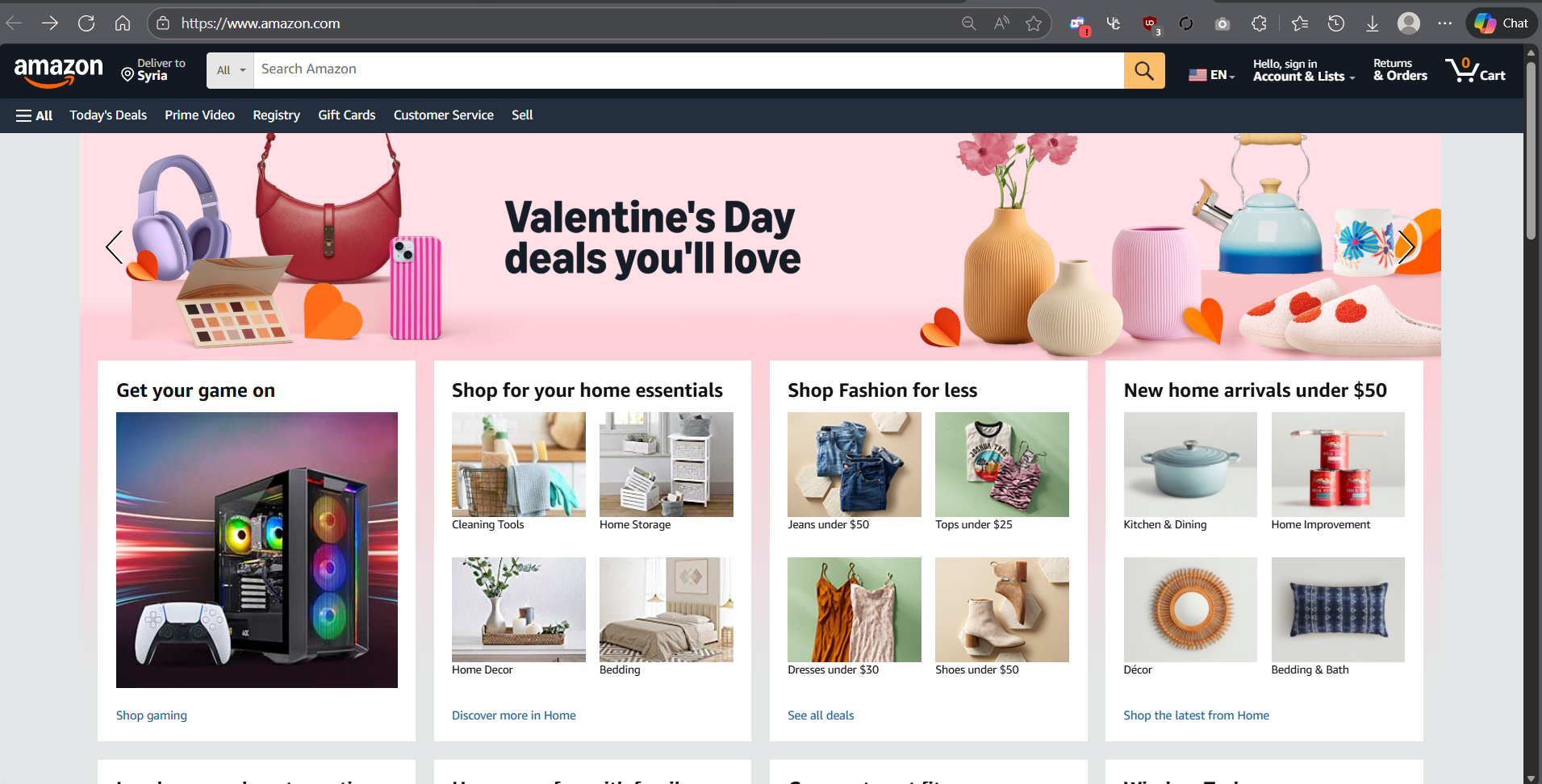 Community report: Amazon's website is partially accessible from Syria. The landing page loads, product search works, and users can sign in to their accounts. However, actual shopping is not possible due to the absence of supported payment methods and shipping options to Syria. Status updated from un...