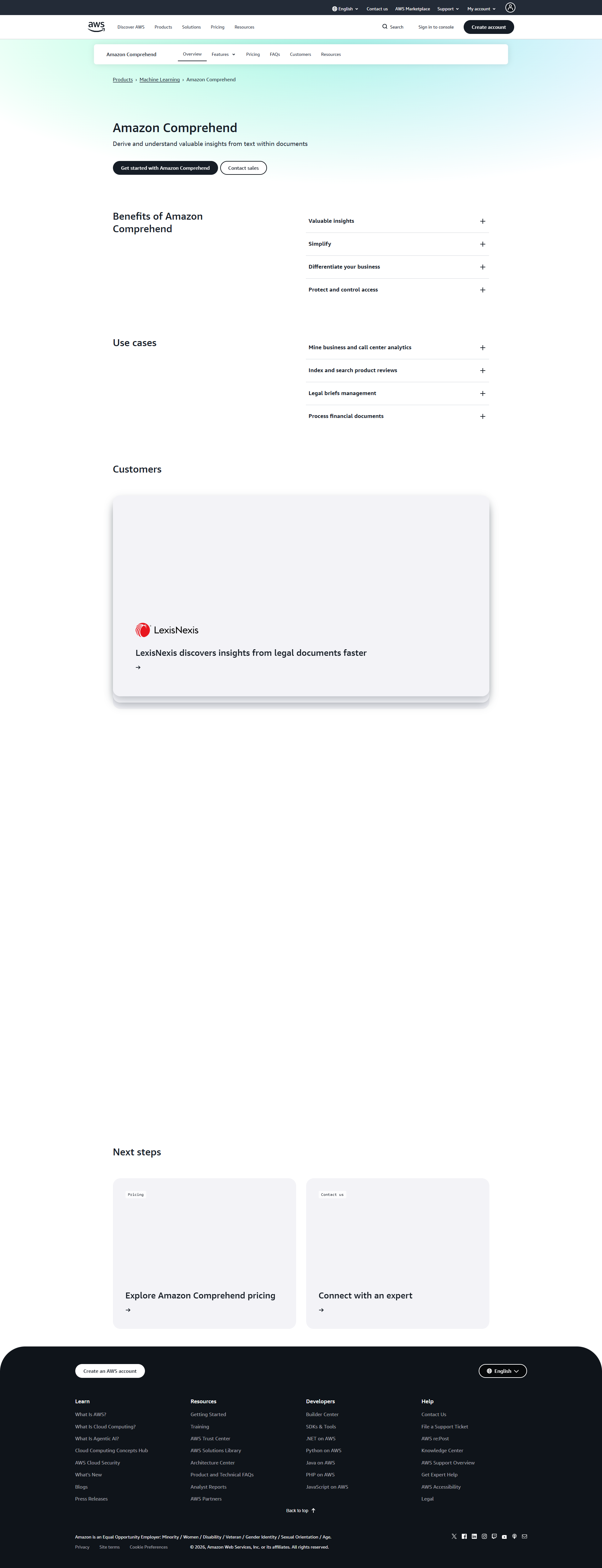 Contact Amazon Comprehend Support: