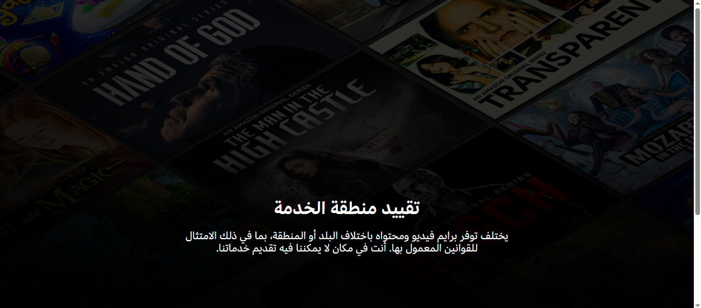 Community testing confirmed that Amazon Prime Video remains blocked in Syria. Accessing primevideo.com from a Syrian IP displays the service's own geo-restriction page with the Arabic message "تقييد منطقة الخدمة" (Service Region Restriction), indicating the content is not available in the user's reg...