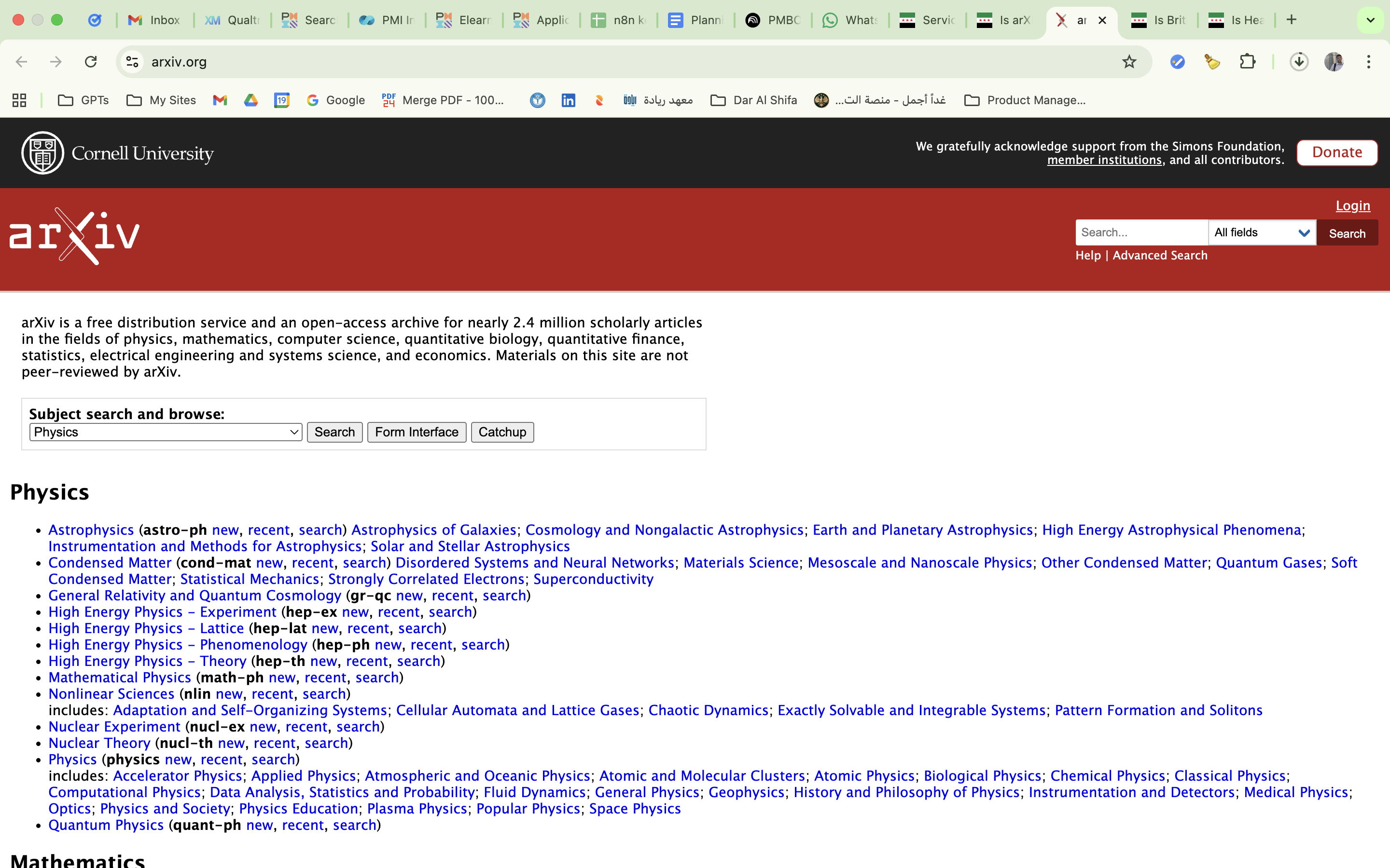 Open-access repository for scientific research preprints in physics, math, and computing