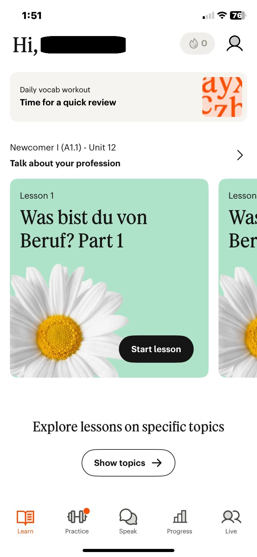 Language learning app combining AI-powered lessons with feedback from native speakers