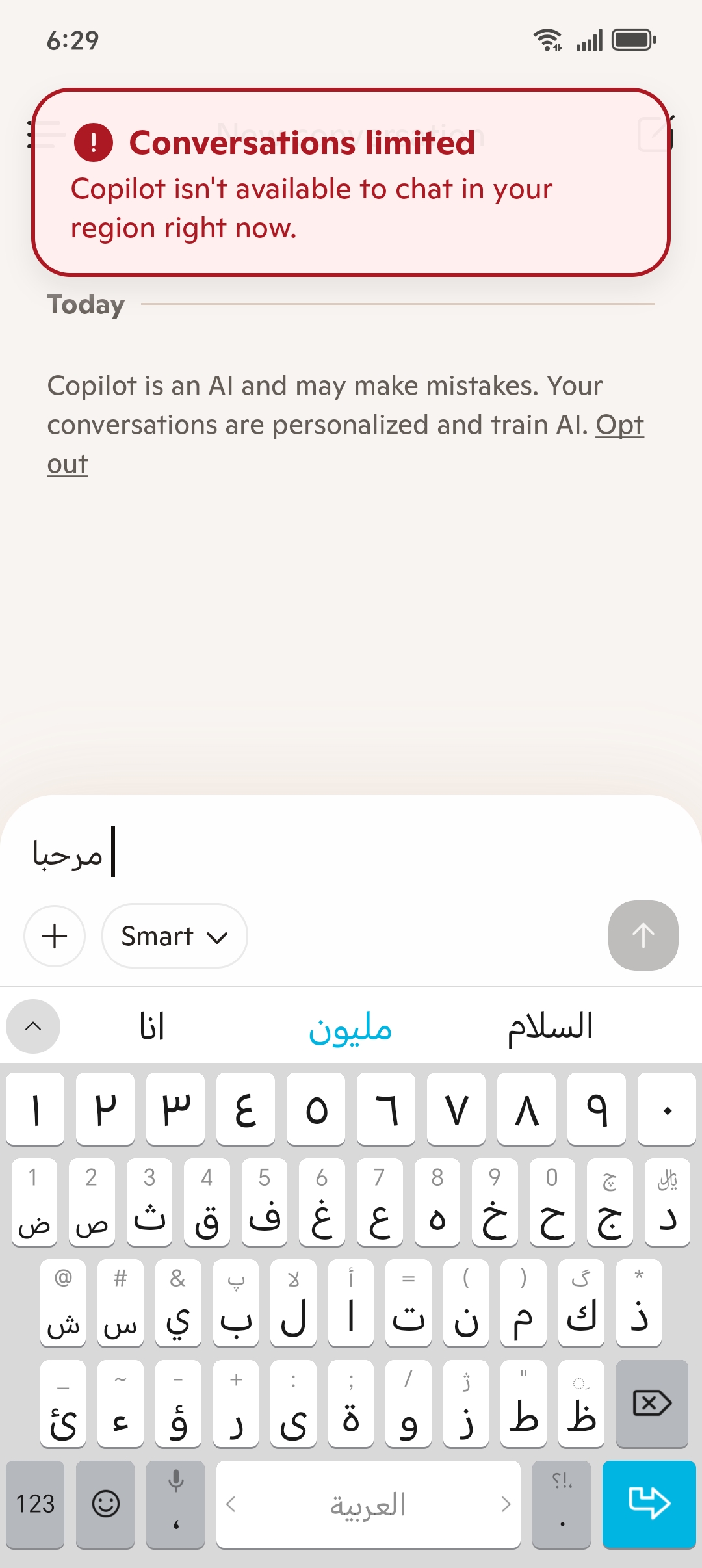 Community verification confirmed that Microsoft Copilot is now fully blocked from Syria. Testing showed copilot.microsoft.com displays "Sorry, it looks like I'm not yet available in your region" and the Copilot mobile app shows "Conversations limited — Copilot isn't available to chat in your region ...