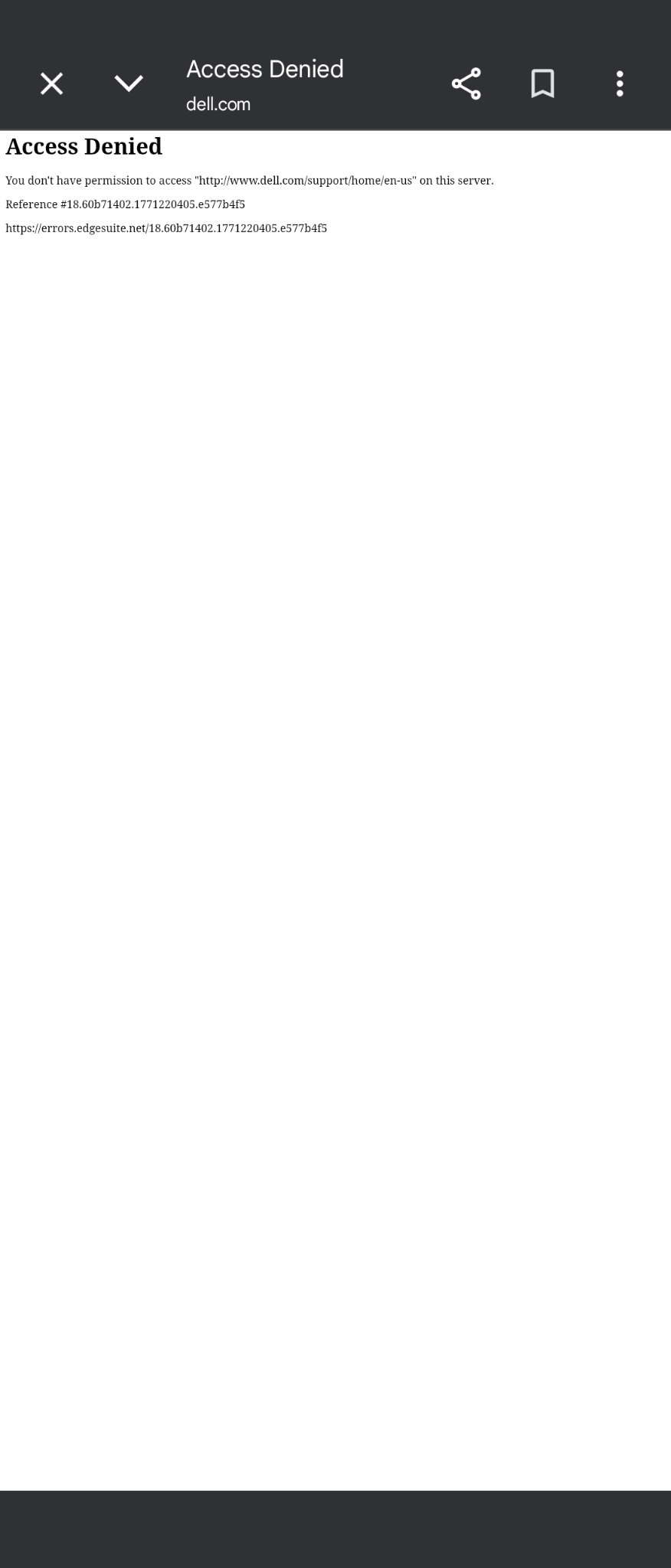 Community report verified that Dell Support is blocked in Syria. Accessing dell.com/support returns an Akamai CDN "Access Denied" error: "You don't have permission to access http://www.dell.com/support/home/en-us on this server." The error references errors.edgesuite.net, confirming Akamai-enforced ...
