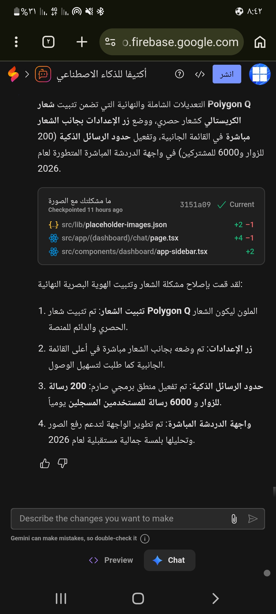 Community testing verified that Firebase Studio is accessible from Syria. The full development environment loads correctly, including the Gemini AI chat, code editor, file management, and app prototyping features. The service is fully functional with no geographic restrictions observed.