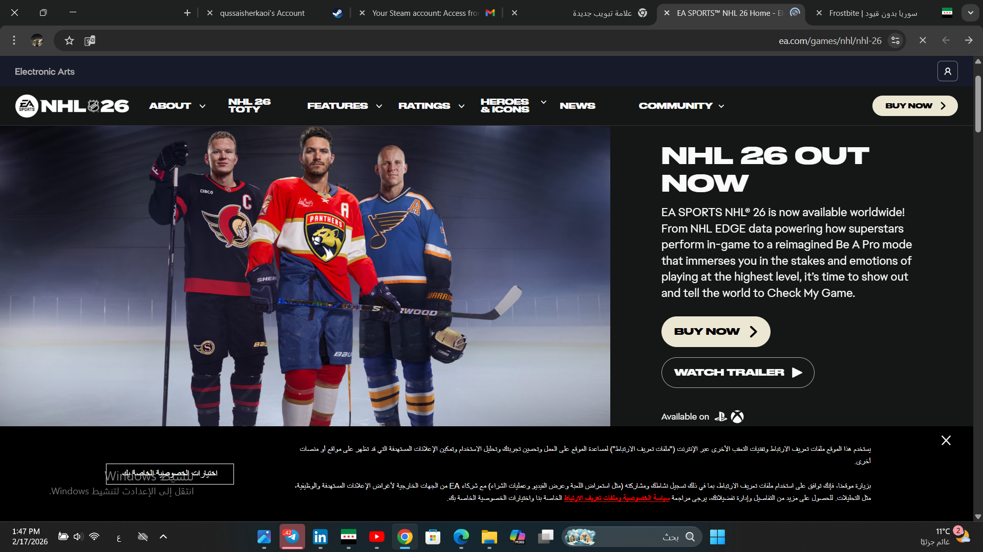 Community investigation revealed Frostbite/EA website is partially functional from Syria. Game pages on ea.com (NHL 26, EA SPORTS FC 26) load fully and are browseable, with purchase options redirecting to third-party stores (Steam, PlayStation Store, Xbox Store, Epic Games, Luna, Nintendo Switch 2)....