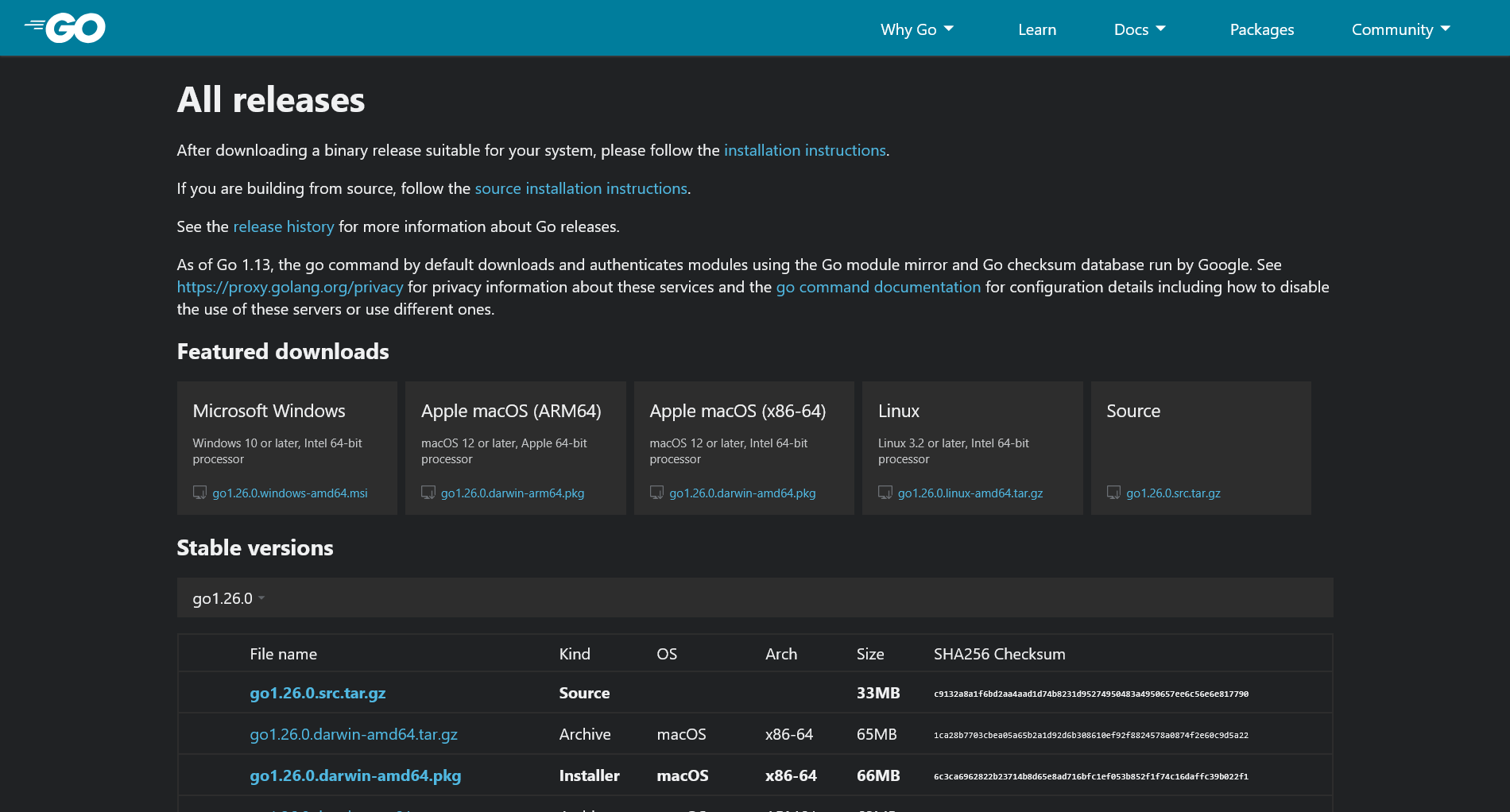 Community report from Syria (Windows/Firefox desktop). The main go.dev website loads normally, but download links on the releases page return a Google 404 error page. Submitter confirms: "The main website is working normally but in the download page when you select a platform it blocks you from down...