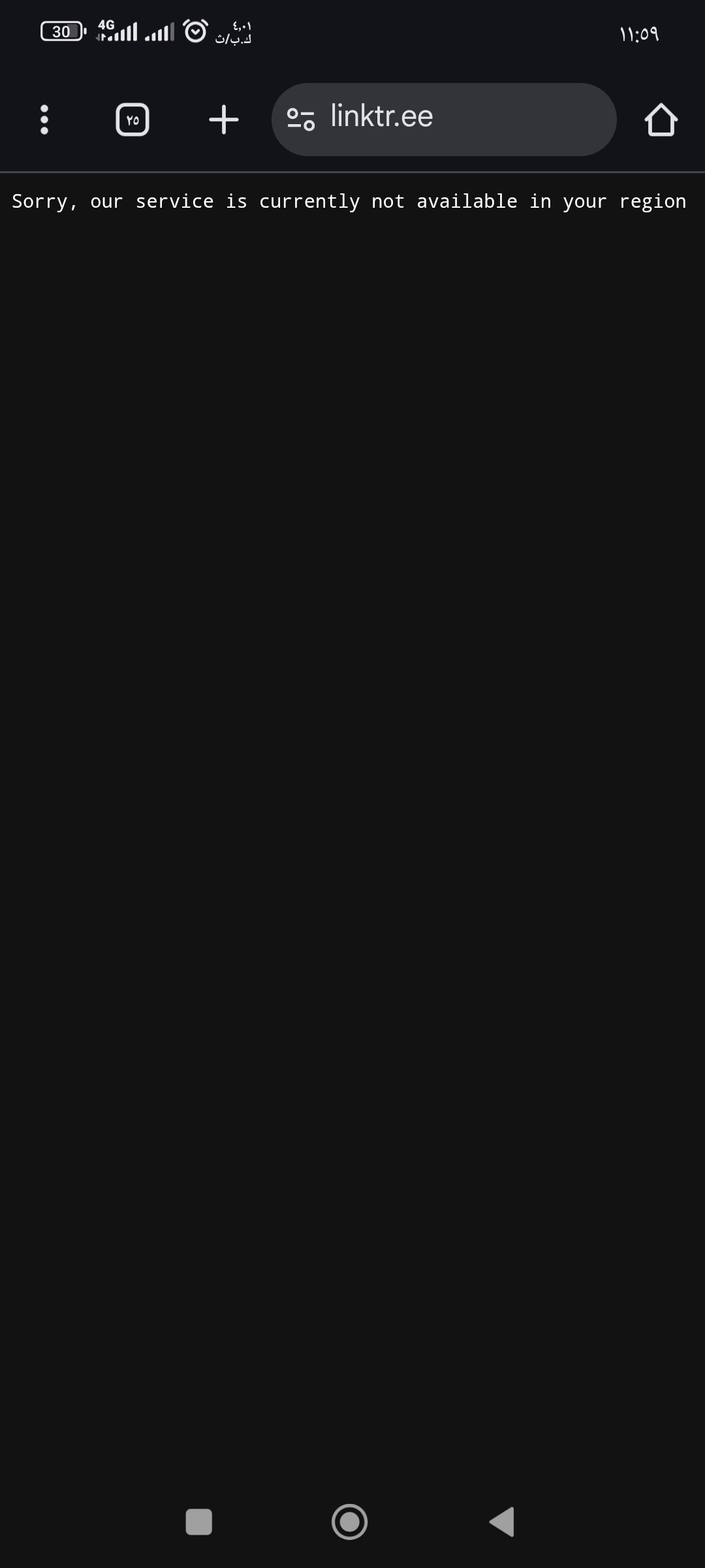 Community testing confirmed that Linktree is blocked in Syria. Accessing linktr.ee from a Syrian IP on mobile returns a region-restriction page stating: "Sorry, our service is currently not available in your region." The block applies to the entire service with no partial access.