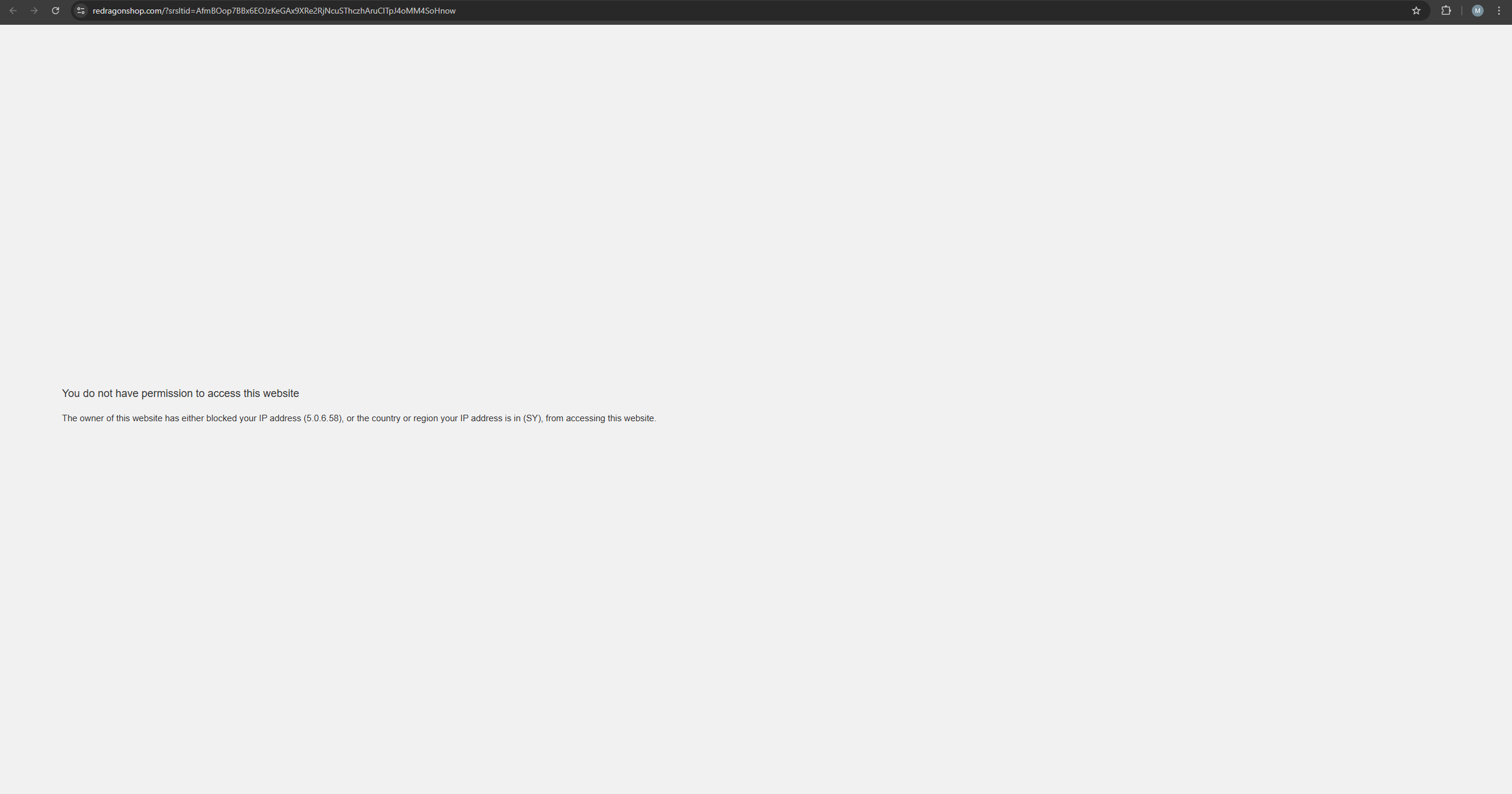 Community testing confirmed that Redragon's online store is blocked in Syria. Accessing redragonshop.com from a Syrian IP returns a hosting-level block page stating the IP address or country (SY) has been blocked by the website owner. The block applies to the entire site.