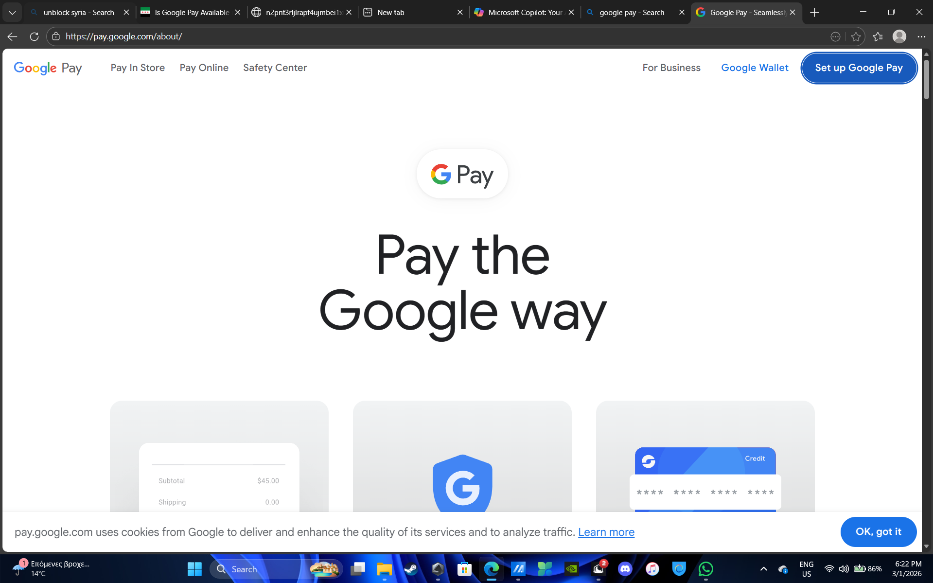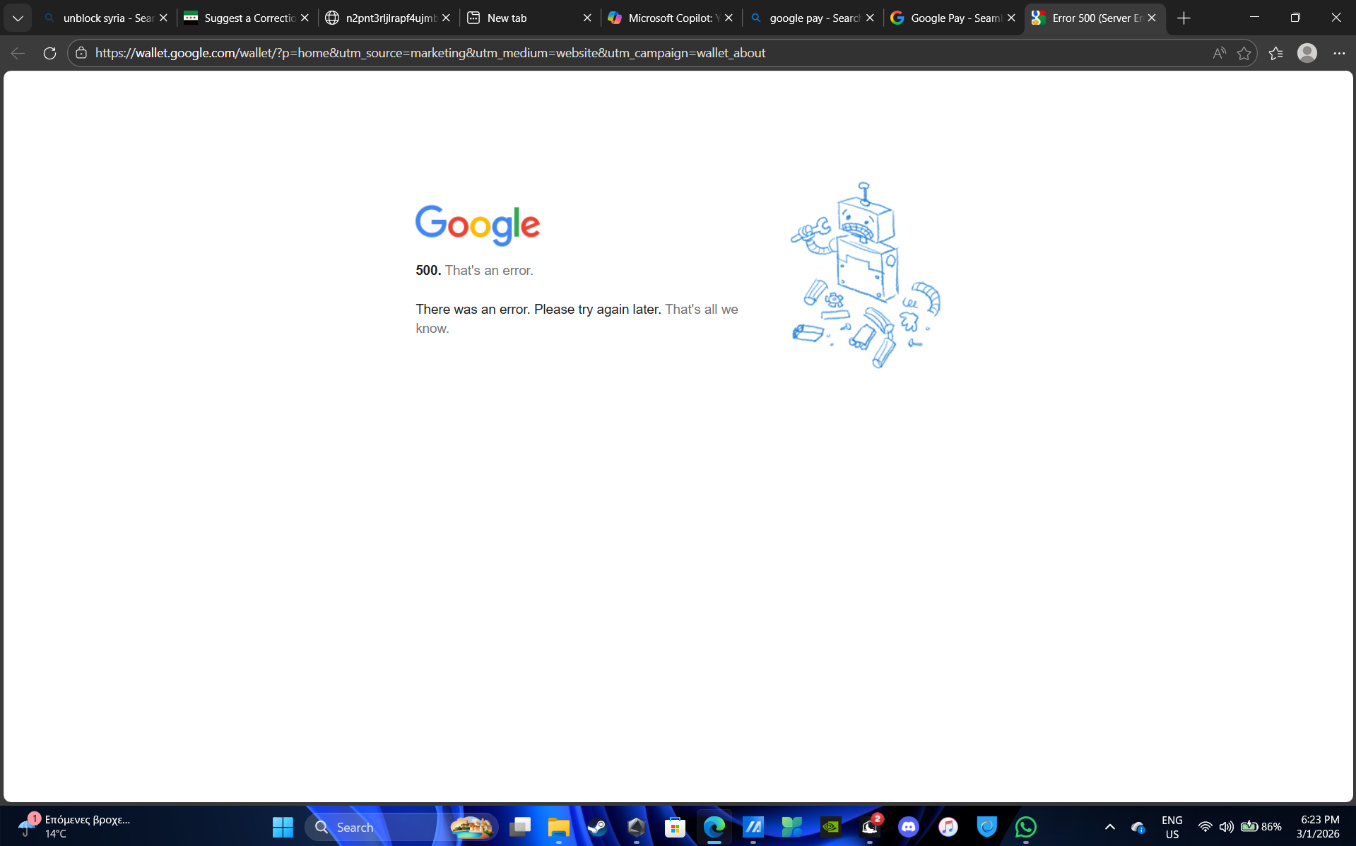 Ceribandina civakê ji Sûriyê piştrast kir ku Google Pay niha qismen pêgihîştî ye. Malpera agahdariyê li pay.google.com/about bi tevahî rast tê barkirin bi hemû naverok û navîgasyonê. Lêbelê, xizmeta fonksiyonel a Google Wallet li wallet.google.com dema ku meriv hewl dide berîkê saz bike, çewtiya 500...