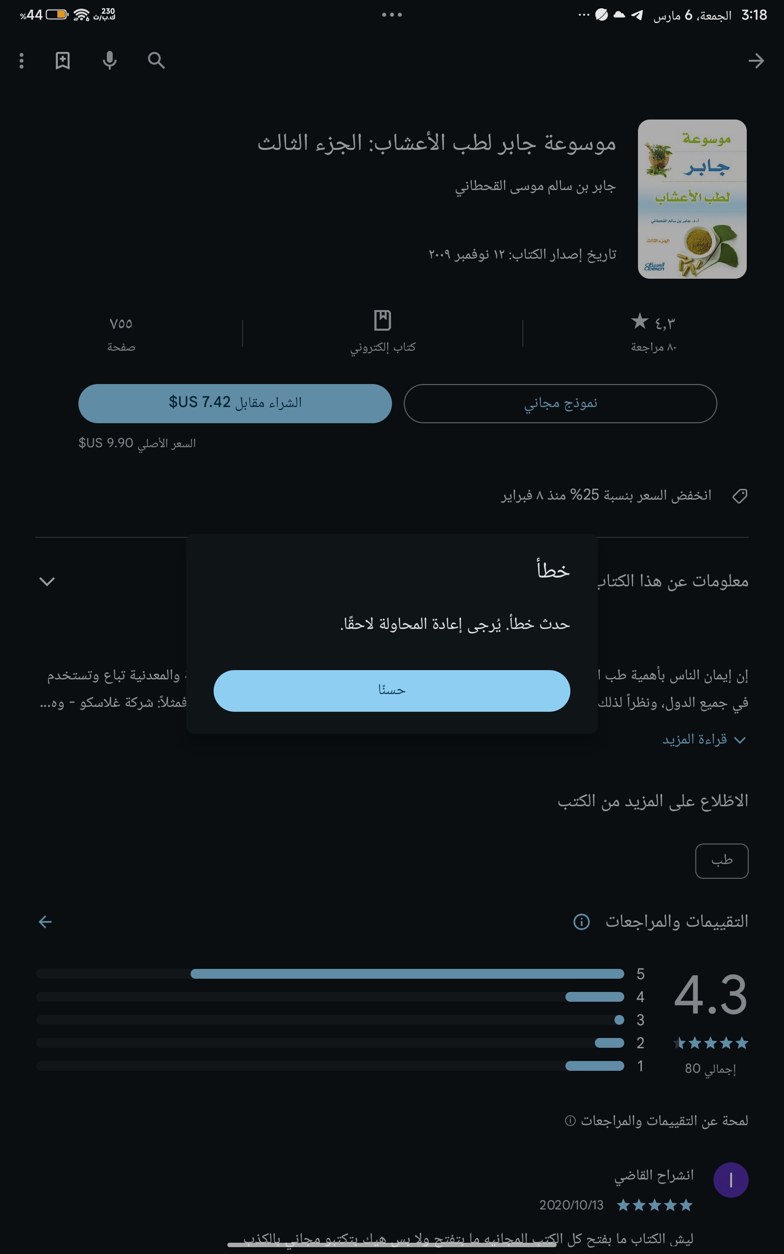 Ceribandina civakê piştrast kir ku Google Play Books li Sûriyê sînorkirî ye. Dikan dikare were gerandin û navnîşên pirtûkan bi awayekî asayî werin dîtin, lê dema ku hewl tê dayîn pirtûkek were kirîn, çewtiya ji aliyê pêşkêşkerê ve tê xuyang. Ceribandina bi VPN-ê piştrast kir ku diyaloga kirînê bi se...