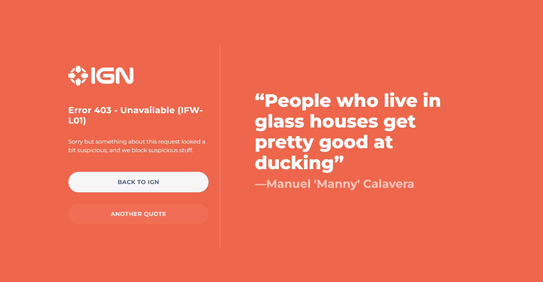 Ceribandina civakê piştrast kir ku IGN li Sûriyê astengkirî ye. Dema ku ji navnîşana IP-ya Sûriyê hewl tê dayîn bigihîje ign.com, rûpelek çewtiyê ya taybet bi koda «Error 403 - Unavailable (IFW-L01)» xuya dibe ku dibêje daxwaz gumanbar xuya bû û hat astengkirin. Malper bi tevahî nayê gihîştin.